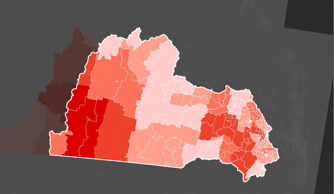 A similar trend to the wildlife distribution means many endangered or of concern vegetations live along the surface water system. It highly covers the same area compared with endangered wildlife habitats. Another aspect