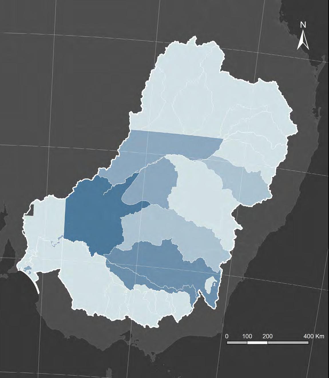 <https://qldspatial.information.qld.gov.au/catalogue/ custom/detail.page?fid={21B6FAAC-02BF-4EEE-8E725055C43157EF}> Hydrology map self-made based on elevation map 1km cells