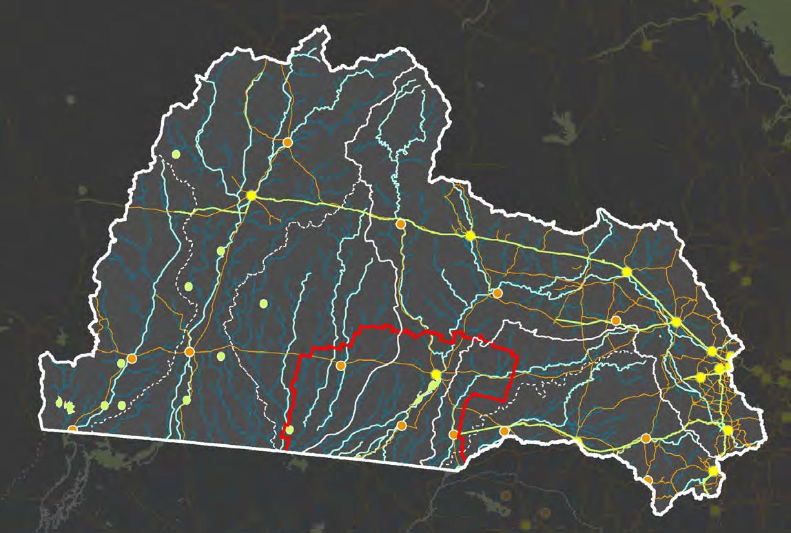 Since one of the research topics focuses on the potential watering place for cultural flow and Indigenous holdings, one factor cannot be ignored - the site should be relatively easy to get access for Indigenous People. After overlapping the major cities and towns, and the transportation system with the local hydrological system, the final answer is becoming clear.
