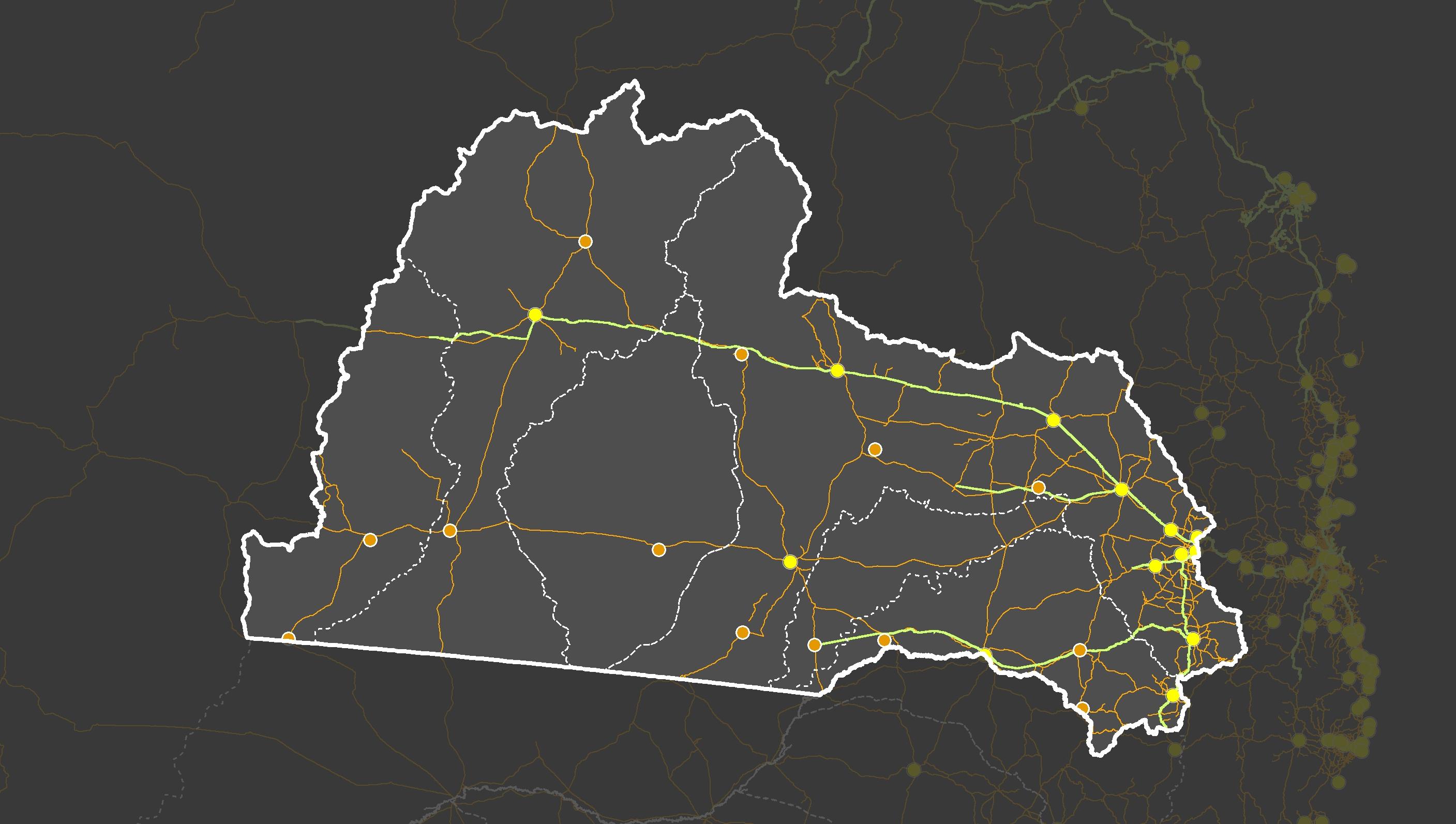 Hydrology map self-made based on elevation map 1km cells Findings: