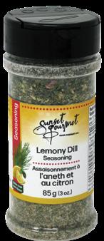 A delicious blend of dill, onion, garlic and shallots with a hint of lemon. Perfect for salmon or any fish. Add to cucumber or potato salad or sprinkle over steamed veggies. Excellent mixed into scrambled eggs and sprinkled over cottage cheese, salad and pasta. (85 g jar)