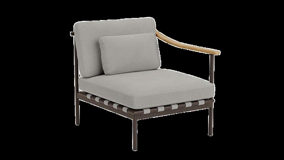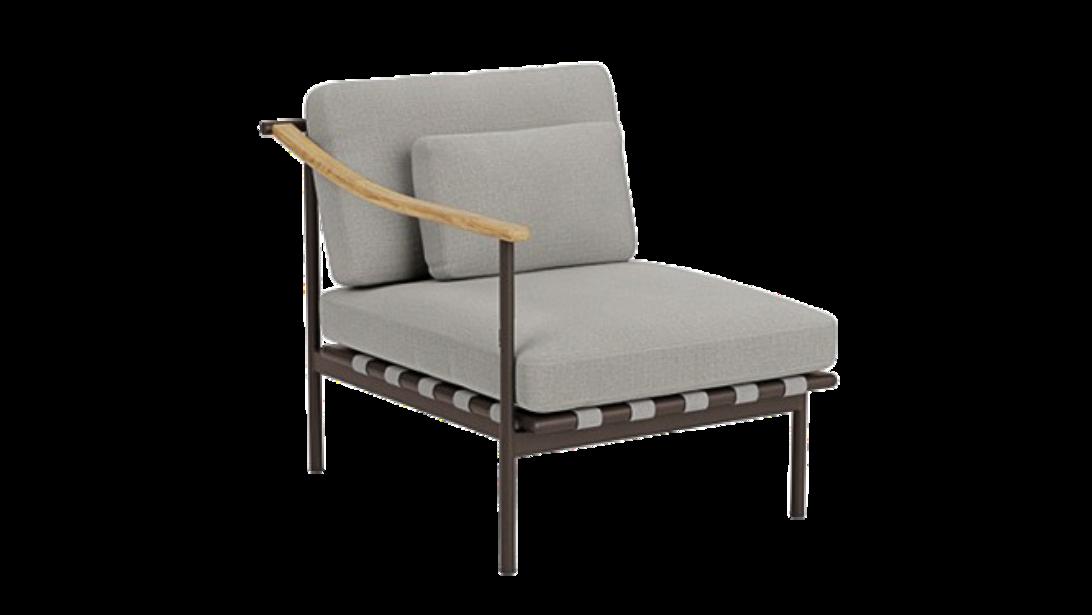 Around deep seating is modular and available with many configurations to suit your need, including single, double and triple seats with the option of teak or aluminium arms. Seats can form a corner when two units are placed at a 90-degree angle.