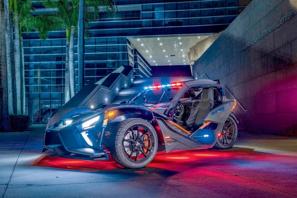 Many times community outreach is done for specific events but that’s all changing with the latest reveal. Now the Department is taking outreach to the next level and are proud to present their newest community policing and recruitment initiative, The Aventura Police Slingshot. Their new Slingshot vehicle will help spotlight what the City of Aventura has to offer its residents and the South Florida community. In addition it assists in building bonds through partnerships, engagement and outreach.