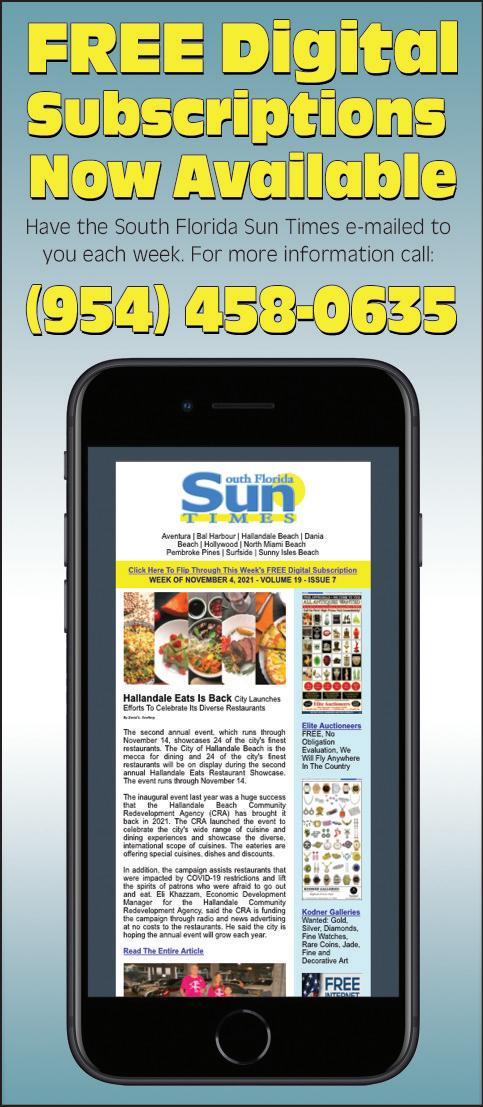 three new commissioners being sworn in at the same time; four of the seven have been brand-new in terms of the majority. That evening was so magical and full of positive energy, and the commission chambers have never had a standingroom-only crowd of 250 guests,” he said. “Later that evening, the city came together to give back to the residents with a complimentary celebration at the Hilton Miami Aventura, so it was refreshing to experience a neighborhood-style event welcoming our new leaders to the forefront. We have a great commission, and I am so fortunate that I get the chance to servewiththesepeople.”