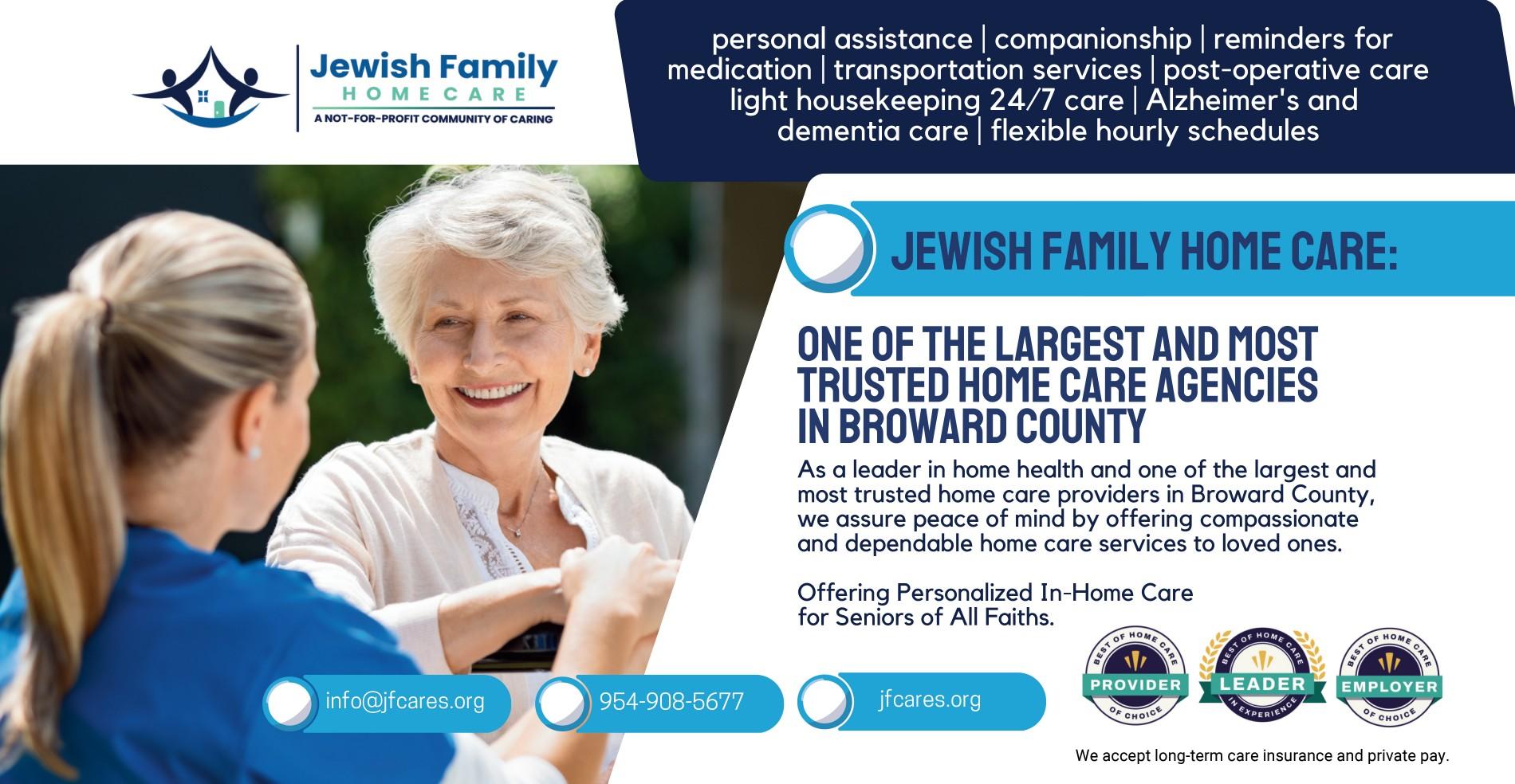 care and personal care services guided by Jewish values, social responsibility, compassion and respect. JFHC is an affiliated agency of Goodman Jewish Family Services of Broward. JFHC is located at 5890 South Pine Island Road, Suite#: 200, Davie, Florida 33328. For more information, visit JFHC at: www.jfcares.org. Contact: (954) 908 5677. Or visit: Facebook, X, Instagram and LinkedIn.