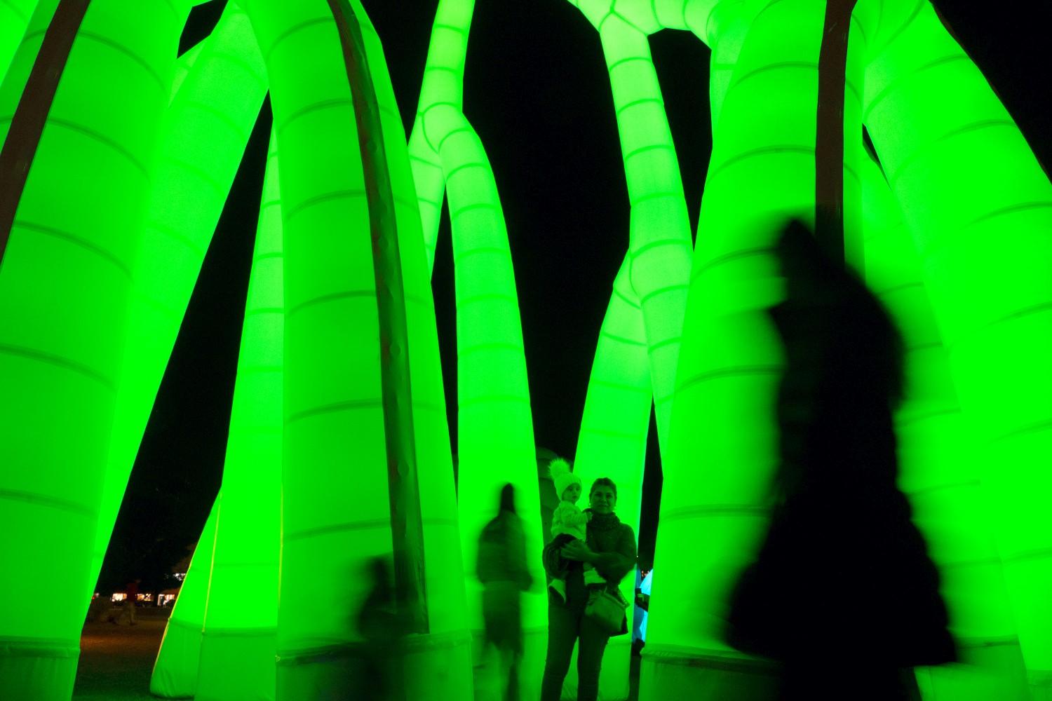 • “Grove” by Pneuhaus - An immersive sculptural environment of illuminated columns branching overhead, inspired by underground root systems and the exchange of energy between trees.