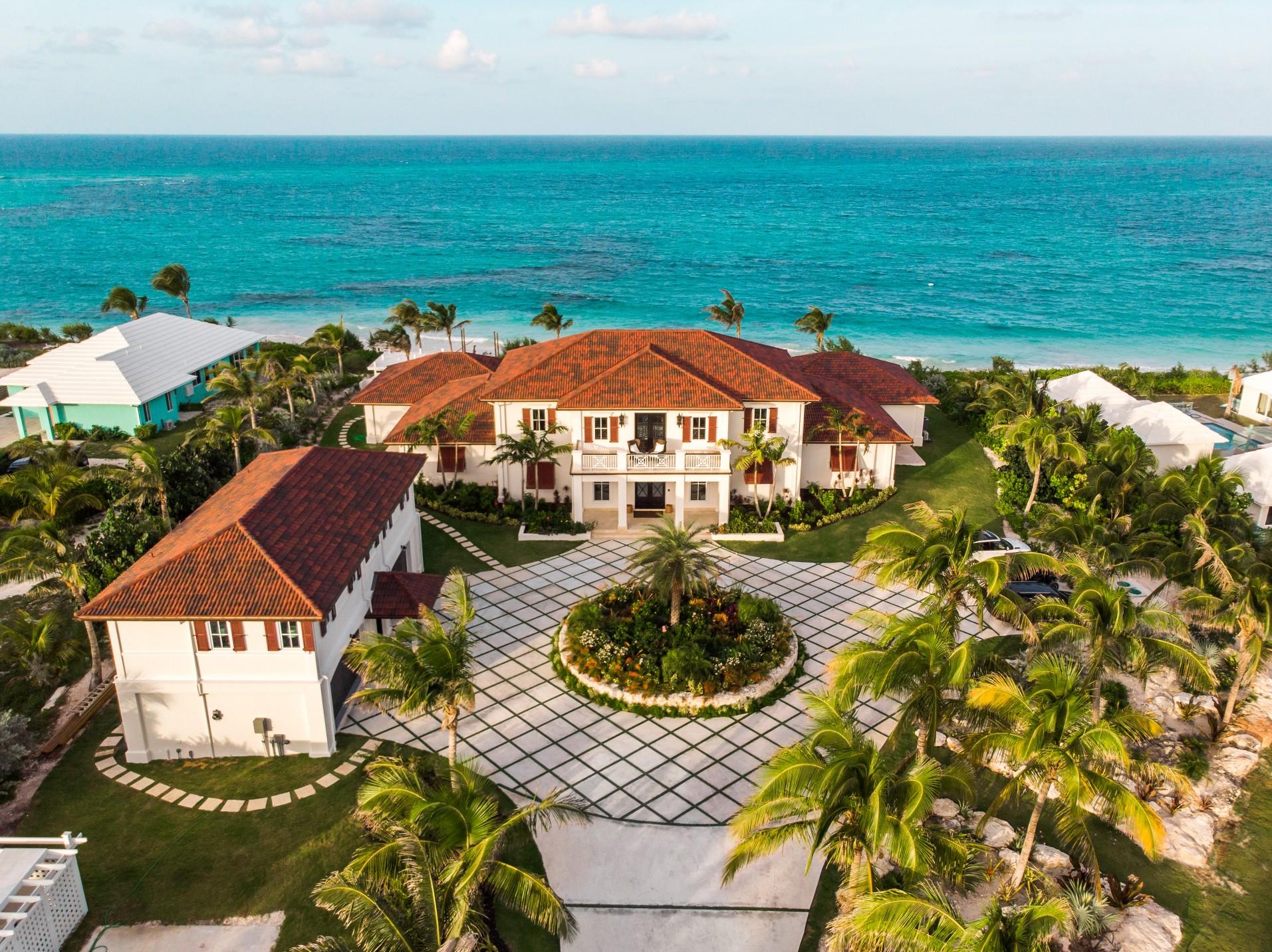 This exceptional eight thousand square foot vacation home spans across a private 2.2 acres and sits directly on a mile-long private pink sand beach.