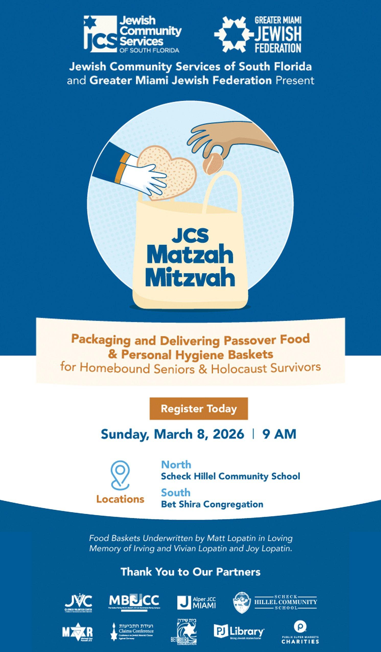 To donate to the 2026 JCS Matzah Mitzvah Campaign, click here: https:// jcsfl.org/matzah-mitzvah-donate/