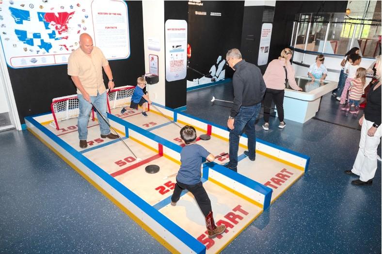 Families explore the science of movement and performance through hockey-inspired activities during Power Play Weekends at the Museum of Discovery and Science. Photo courtesy of MODS.