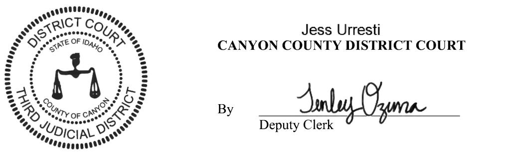 Third Judicial District, Canyon County Jess Urresti, Clerk of the Court By: Deputy Clerk - Ozuna, Tenley