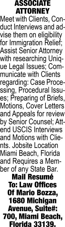 JOHN’S PLUMBING JOHN’S PLUMBING Service Today! (954) 923-4184 www.johnsplumbing.com (954) 406-0486 Your Home Could Be Harming You Environmental Testing & Laboratories LICENSED & INSURED (954) 406-0486 MOLD PROBLEM? FREE DIGITAL SUBSCRIPTIONS FREE DIGITAL SUBSCRIPTIONS WWW.SOUTHFLORIDASUNTIMES.COM LINE ADS Starting at $2000 (954) 458-0635 YOUR AD HERE To put Your Business in the Spotlight, call (954) 458-0635 and be Seen Now! 1837A SW 31st Ave., Hallandale Beach, FL 33009 Custom Cabinets - Wood - Mica - Kitchen - Vanities - Wall Units Countertops - Granite - Quartz - Corian (954) 923-3269 Licensed & Insured for 30 years Buy Factory Direct Sales - Services - Installation All Major Credit Cards Accepted! • uncabdesigns@gmail.com PLUMBING ISSUE? 24 Hr Emergency Service 954-526-3986 (License #CGC1507349) Dry out • Water Extraction 24 Flood Clean Up Emergency Service (954) 923-9822 LINE ADS Starting at $2000 (954) 458-0635 SERVICE DIRECTORY SERVICE DIRECTORY SERVICE DIRECTORY Chickee Huts NEW & REPAIR 954.497.1122 State Certified Thatching Contractor CYC000002 by Advanced Construction Corp. 337385 www.chickeehuts.com To place your Classified Listing in our print and digital publications, please call (954) 458-0635, or email suntimesgraphics@aol.com. The deadline to place your ad is 4pm every Tuesday. CLASSIFIED HOUSE FOR SALE HOUSE FOR SALE PORT SAINT LUCIE 4 Bedroom/2 Bath, 1,700 Square Feet. Upgraded kitchen, newer A/C and Water Heater, fenced yard, no HOA Fees, no pet restrictions, screened back porch, $435,000. Supreme Global Realty, LLC. AnnMarie Green, Broker (772) 361-3472 HOUSE FOR SALE SERVICE DIRECTORY SERVICE DIRECTORY SERVICE DIRECTORY SERVICE DIRECTORY HELP WANTED APARTMENT FOR RENT FRANCES ZELIGMAN 305-318-6405 LoKation Real Estate PRICE REDUCTION The Atrium in Aventura 2 bedroom 2.5 bath + den 2 parkings, $4500 monthly HELP WANTED APARTMENT FOR RENT Here’s How to Make a Smooth Transition from Your Employer’s Health Plan By Caraline Coats More than four million Americans will turn 65 this year, more than ever before. Whether this
