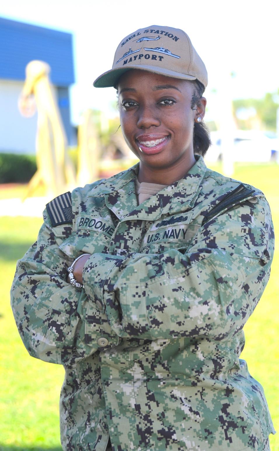 Petty Officer 2nd Class Ajianah Broomes, a native of Fort Lauderdale, Florida, serves the U.S. Navy assigned to Naval Station Mayport.