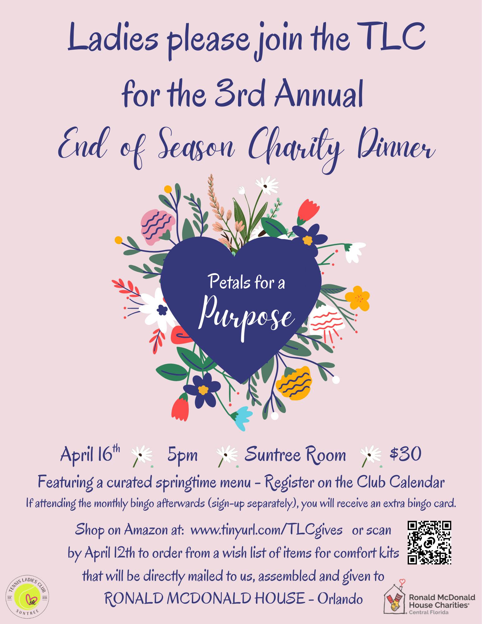 3rd Annual Charity Dinner hosted by the TLC - April 16th - check out flyer for more details and sign up on the calendar.
