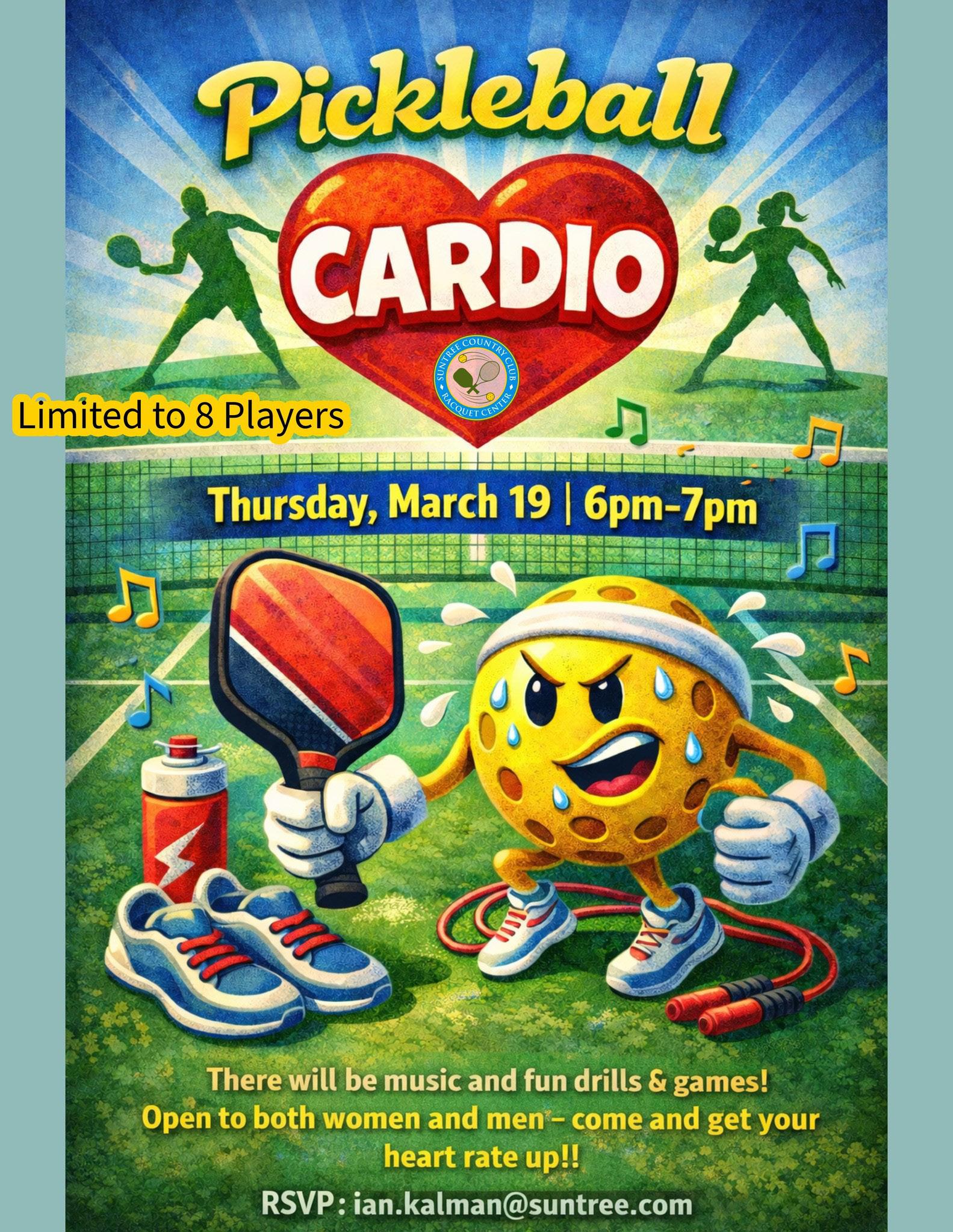 Cardio Pickleball - April 17th, 7pm see flyer for details and sign up on Swish app