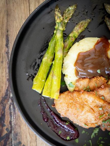 and jasmine rice, grilled elk tenderloin with demi-glace and polenta croquette.