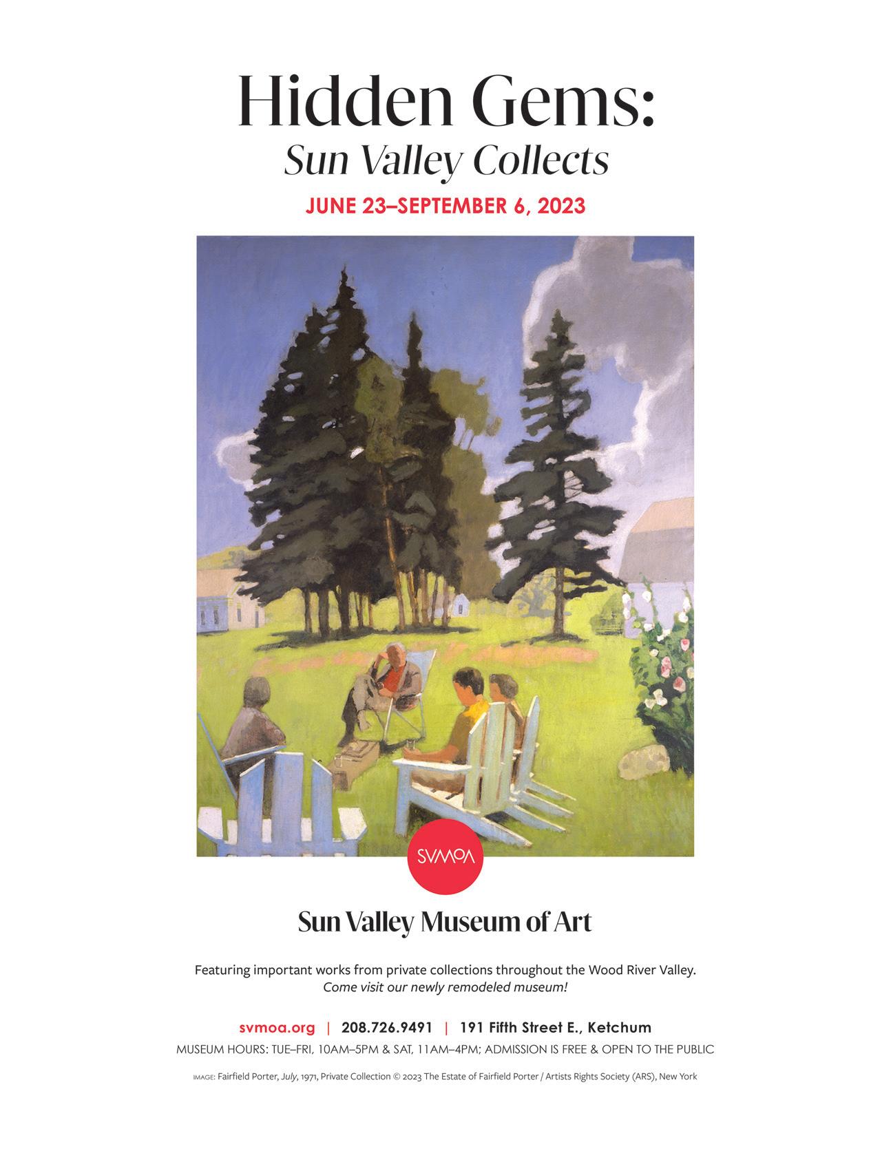 CONTENTS July | 2023 68 62 56 44 | News Ketchum Arts Festival turns 30 56 | Cover Story LA’s BODYTRAFFIC launches dance residency and performances 62| Wood River Museum of History and Culture The Community Library opens the doors to new museum 66 | Devoto Gelato Argentian and Italian gelato in Hailey REAL ESTATE GALLERY Coldwell Banker 90-92 Engel & Völkers . . . . . . . . 93-105 Sun Valley Standard . . . . . . 106-107 Sun Valley Real Estate Christie’s 108-113 Qugiley 114 Windermere . . . . . . . . . 115-117 Silvercreek . . . . . . . . . . . . 118 Sotheby’s . . . . . . . . . . 119-125 My Sun Valley Home 126 Keller Williams 127 Berkshire Hathaway 128-134 Sotheby’s 135 Berkshire Hathaway 136-137 Paul Kenny & Matt Bogue Commercial Real Estate 138 Compass Real Estate 139-141 90 68 | Trailing of the Sheep Andy Warhol-inspired fundraiser is a farm to table event 72 | Sun Valley Writers’ Conference Enjoy talks by accomplished writers 78 | Sun Valley Single Fly Get hooked on Idaho Basecamp’s fundraiser 80 | Stanley Head north for fun in the Sawtooths BOTTOM MIDDLE: BY TIMOTHY FERNANDEZ; BOTTOM RIGHT: BY DONALD SNODDY AND RALPH BURRELL COLLECTION 32 svpn-mag.com
