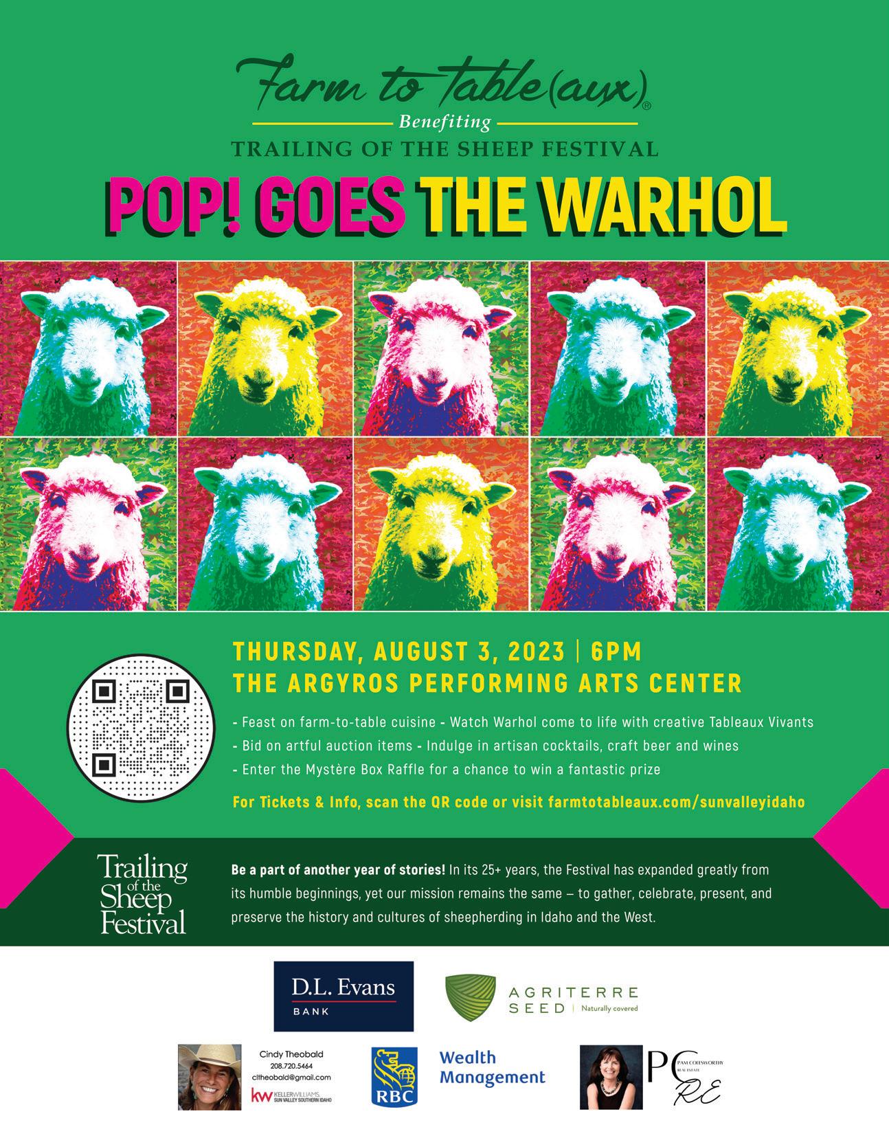 Celebrating a milestone, the Ketchum Arts Festival turns 30.And more art in July includes the Sun Valley Museum of Art’s (SVMoA) reopening of its Ketchum headquarters with an incredible new exhibition showcasing works by Valley art collectors, curated by SVMoA Executive Director Jennifer Wells Green. Get ready to enjoy the newly remodeled space filled with incredible works of art. And to come, Trailing of the Sheep Festival announces an August farm-to-table Warhol-inspired fundraiser.
