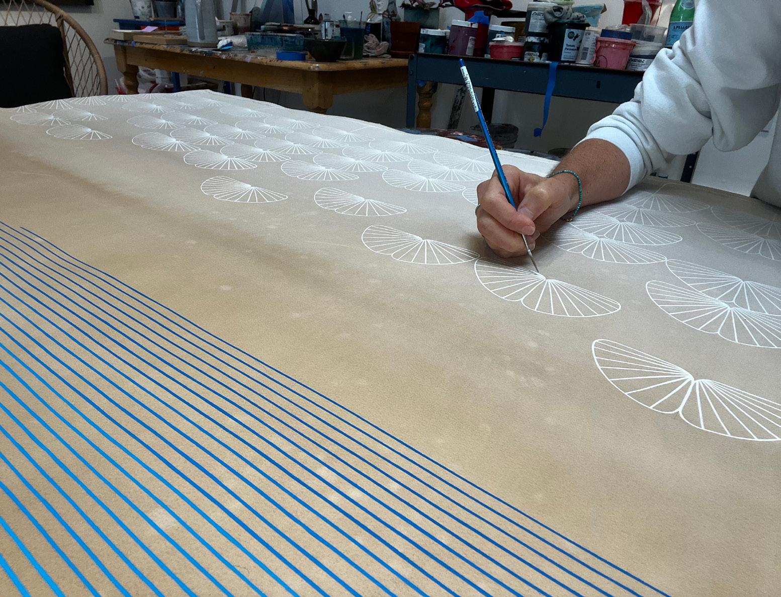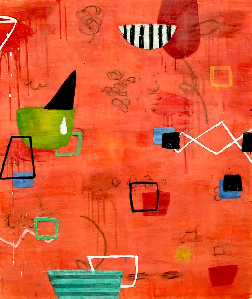 Detail of Roller Girl By Lola tinted resin on wood panel 30” x 30” Hemmings Gallery