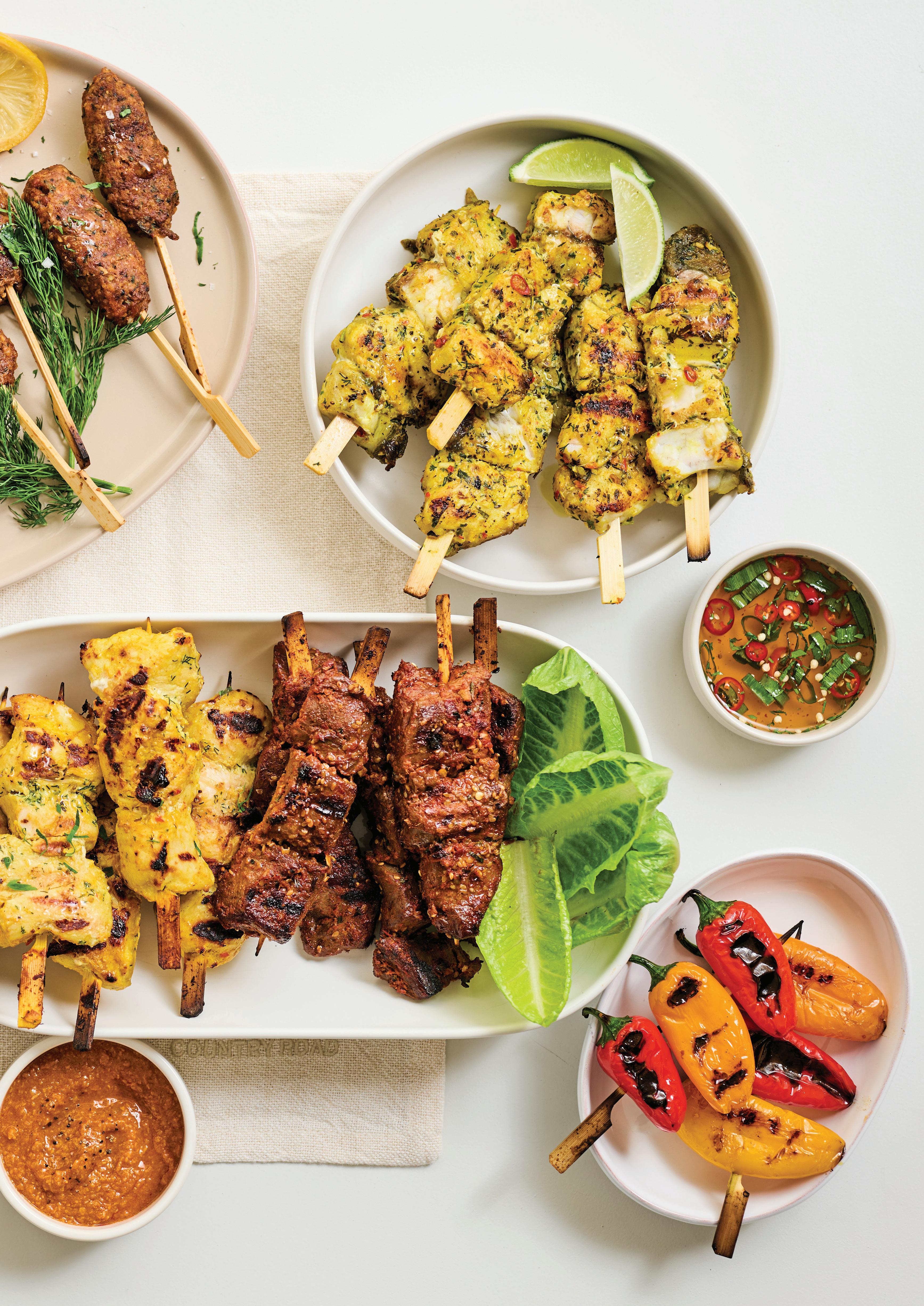 Satay Chicken Skewers with Peanut Sauce 44 Lamb Kofta Skewers 48 Korean Beef Skewers 48