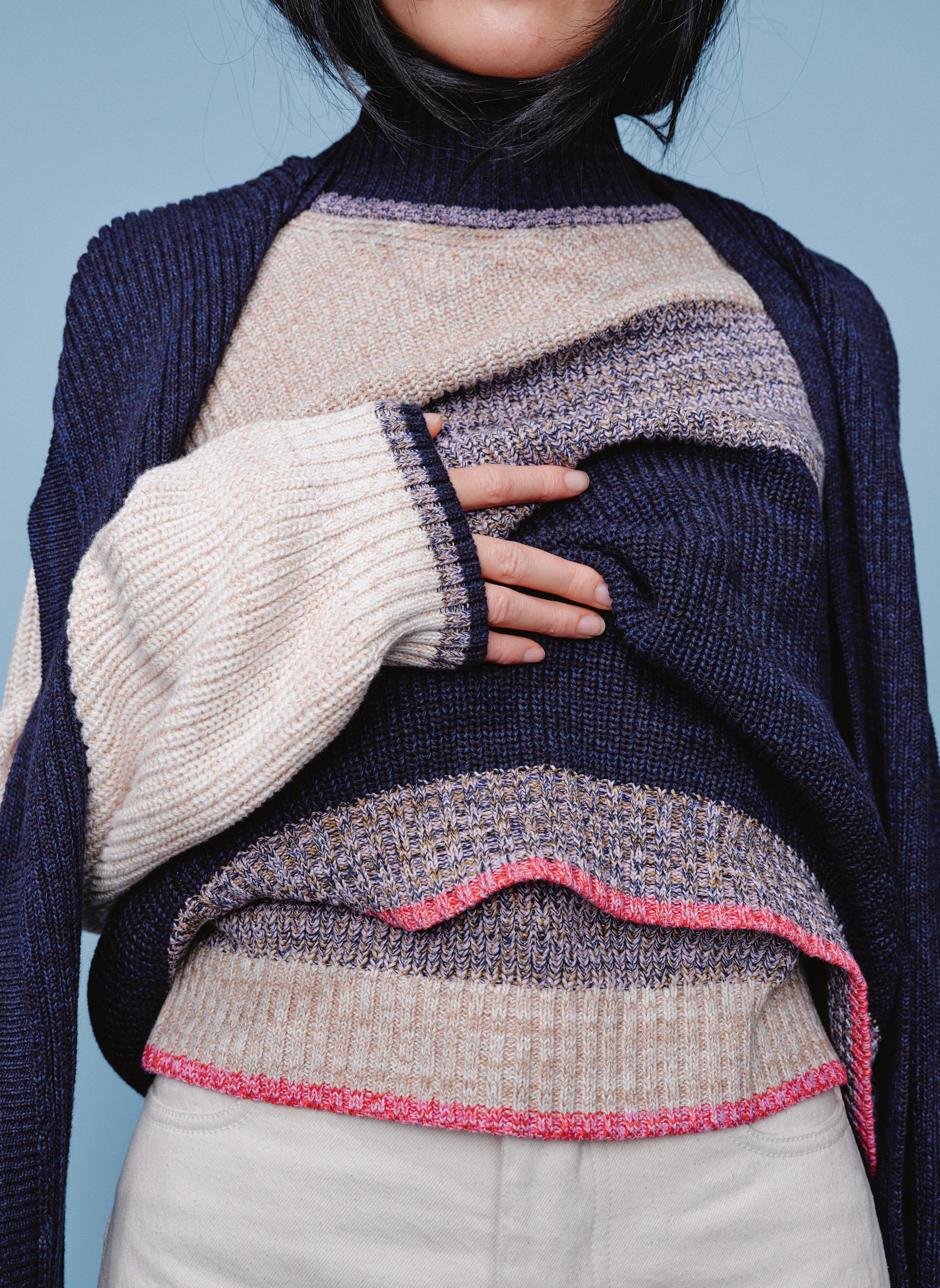 For the first time, Kowtow has created new pieces crafted from surplus yarn rather than fabric. Reimagined through meticulously tweaking yarn by yarn, the Kowtow design team crafted new knitwear blends – brought together through a play of cut, paste and proportion.