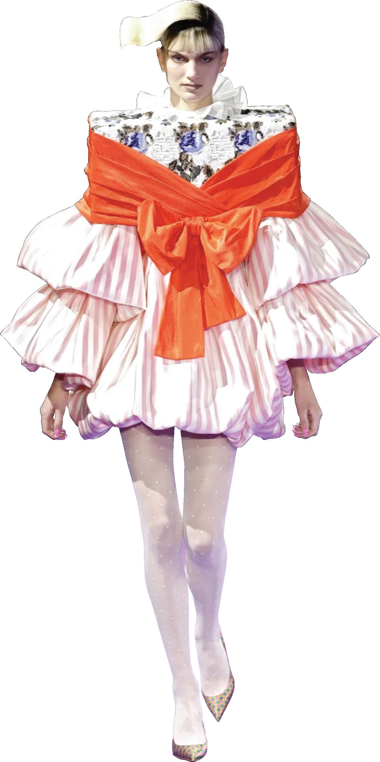 Extreme silhouettes were the theme at VIKTOR & ROLF’S Fall 2024 Couture runway. Each piece is more extravagant and bigger than the last. A literal box shoulder was seen on eight looks in the show. Shoulders carried