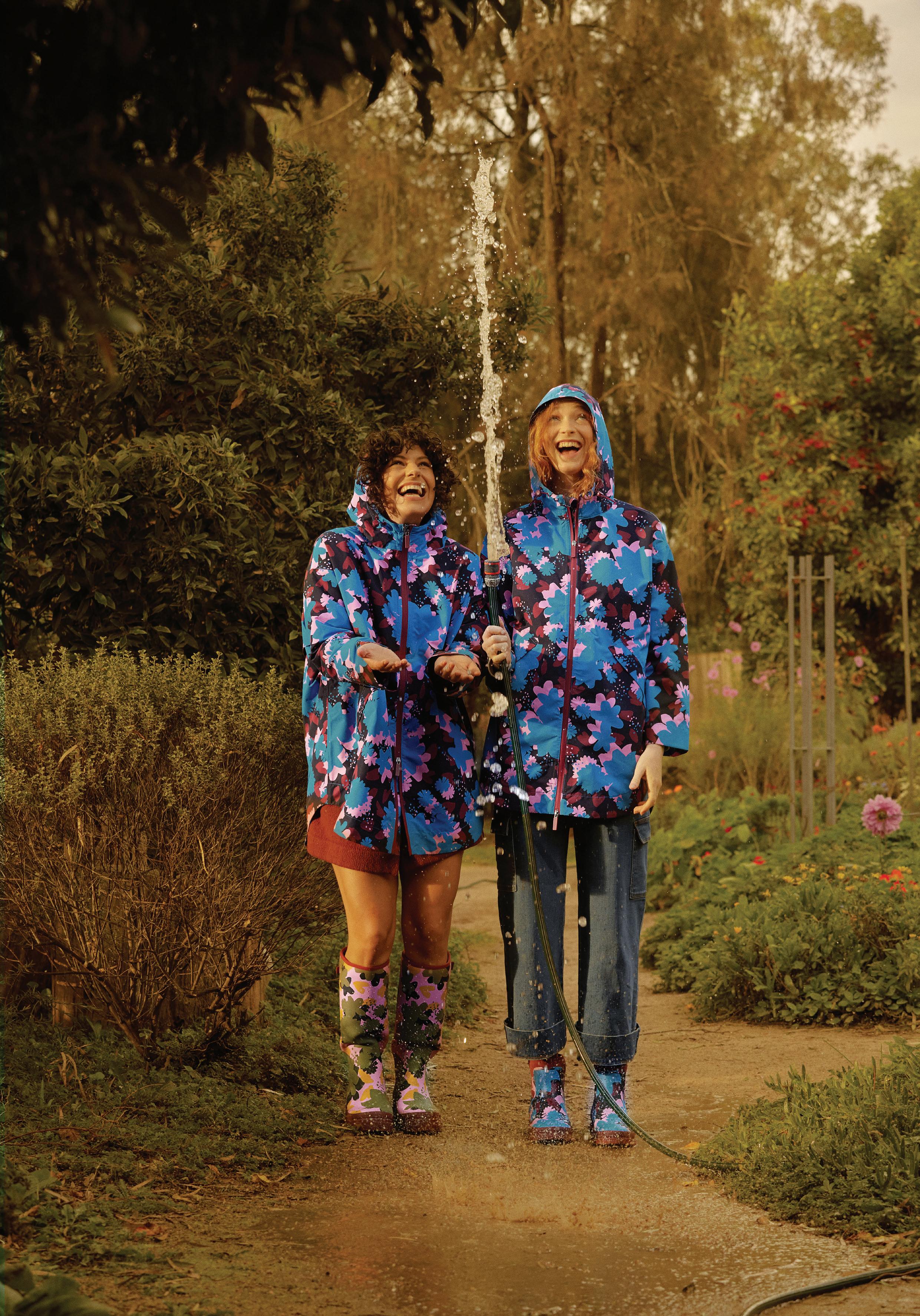 print reimagined for the Merry People x Obus collaboration. Inspired by the enchanting moments of serenity just after sunrise or before sunset, it’s a visual ode to carving out time for oneself, perfectly encapsulated in rainwear that promises to elevate every adventure.