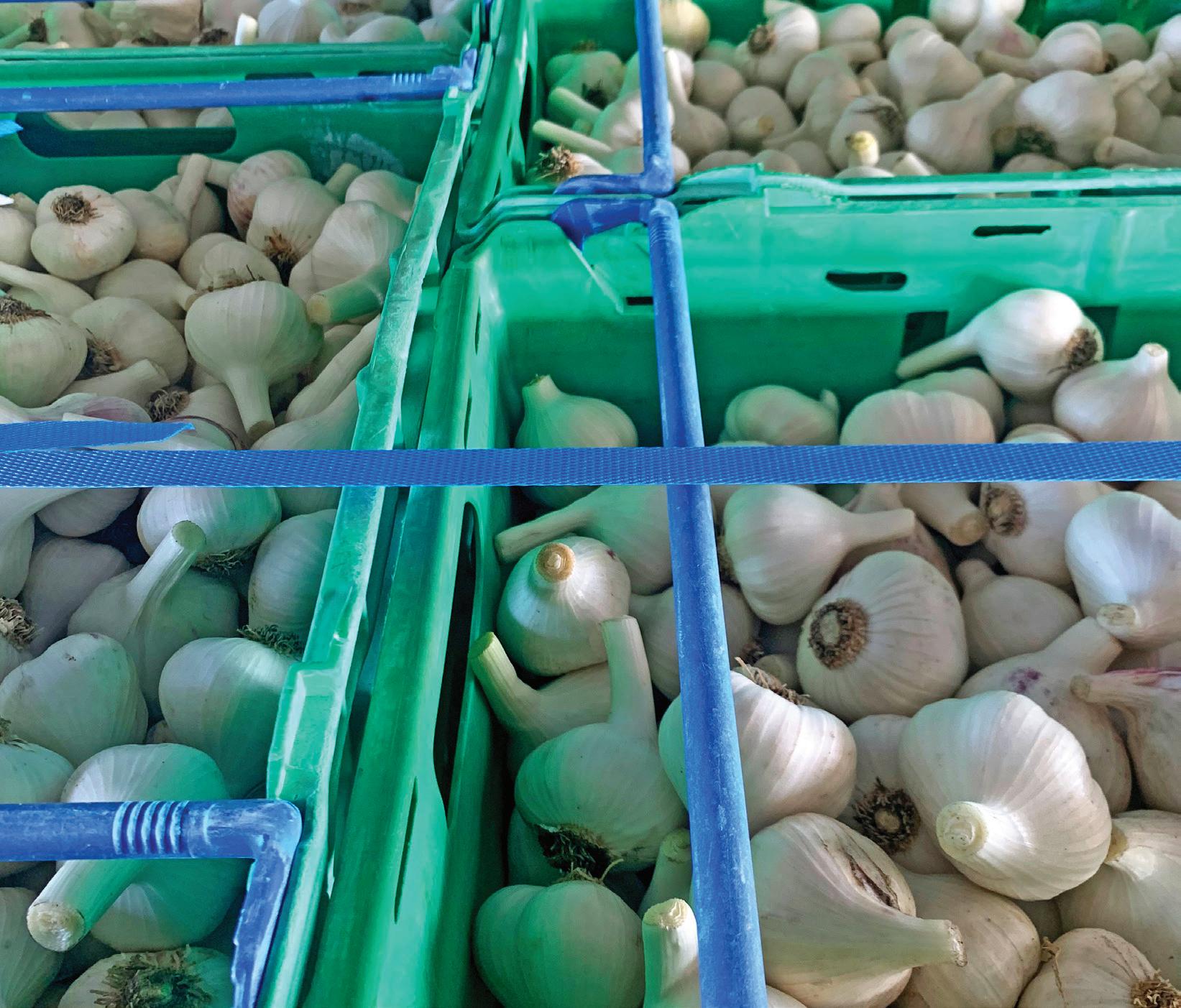 100mm in diameter. They also have an ultra-early type that harvests in late September, but that is a couple of years away from commercialisation. Additionally, they have selected and branded seven unique types of garlic for sale. Another new venture is growing shallots.