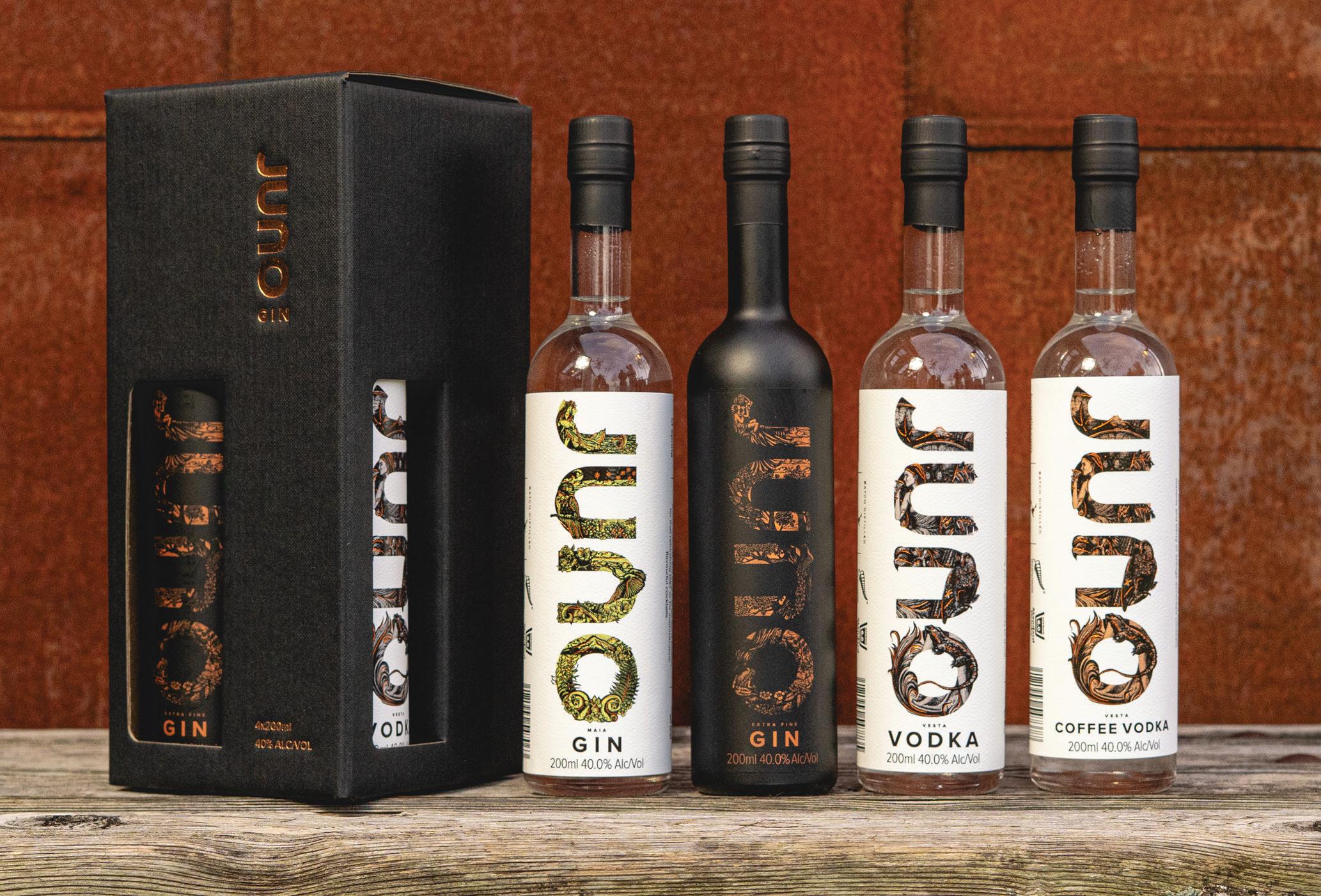 Choose from our spirits Juno Extra Fine Gin, Maia Gin, and Vesta Vodka or surprise someone special with one of our exclusive gift boxes: