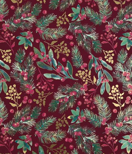 PRINTED GLOSS WRAPPING PAPER CHRISTMAS SPRIGS WINE