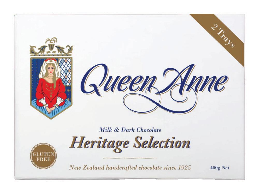 Treat yourself (or a friend) to the iconic Queen Anne Heritage Selection Box. Classic Queen Anne flavours from the past to create the signature two-layer assortment box of finest Milk and Dark chocolates containing classic buttery caramels, smooth fudges, tangy jellies and creamy fruit fondants.
