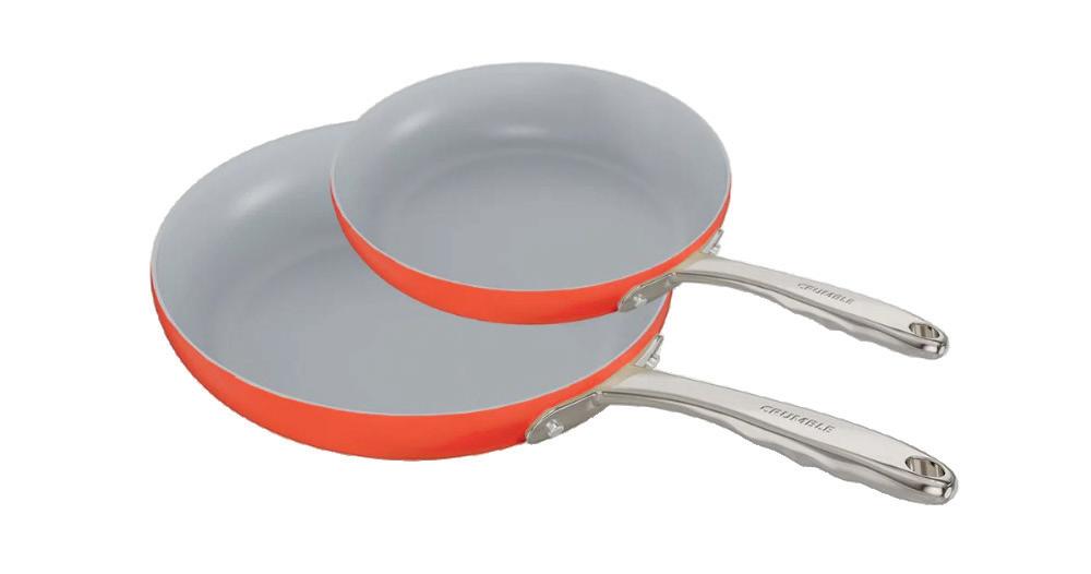 The Duo Fry Ceramic Non-Stick Set includes the Large 28cm Fry Pan and Baby 20cm Fry Pan. A harmonious pair for searing up your protein in one and crafting the perfect side or sauce to complete your meals.