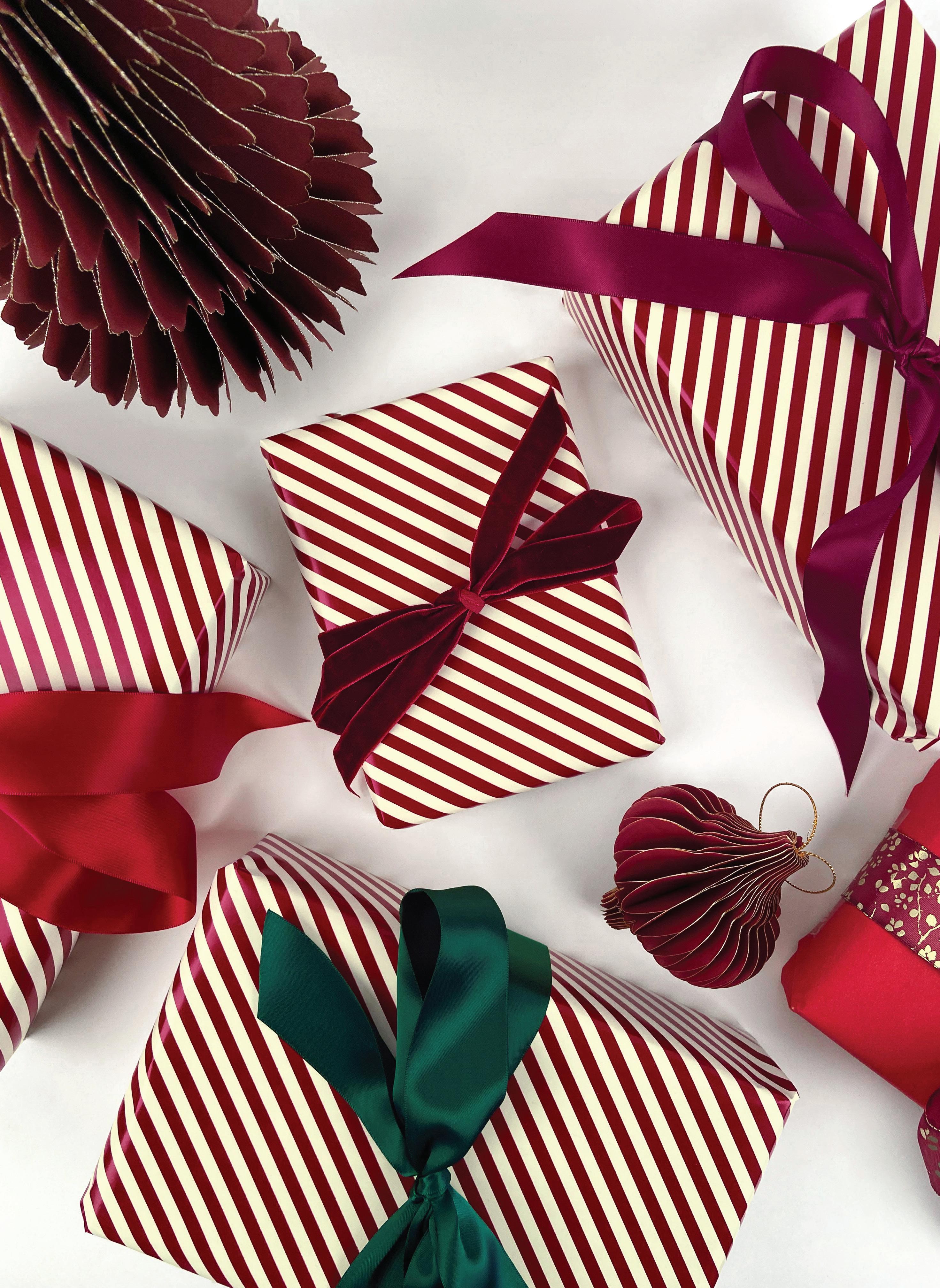 Diagonal Stripe Wine & Ivory. Featuring on-trend bold wine/ ivory stripes, this design is the perfect way to add a touch of Christmas cheer to your gifts.