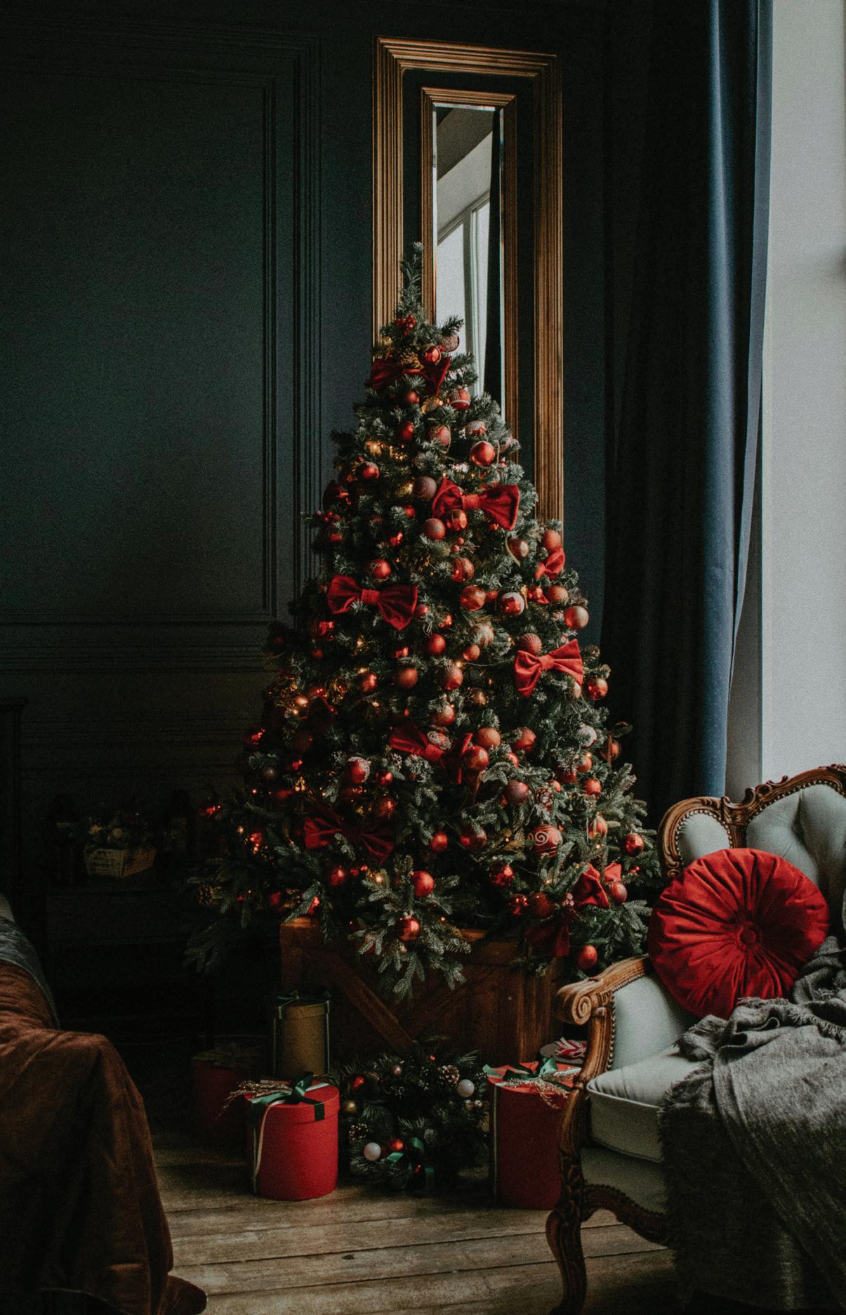 Start with warm tree lights. Avoid multi-coloured lights or anything that flashes. Remember, this is supposed to be a sophisticated, elegant tree. To make the tree look full and lush, use three-inch ribbon (preferably with a tartan print) to add depth and different textures. It’s important to put the ribbon on the tree before any decorations, as otherwise this can be a painstaking, frustrating process. Stick to the script for your decorations. Make sure that your baubles follow the red,