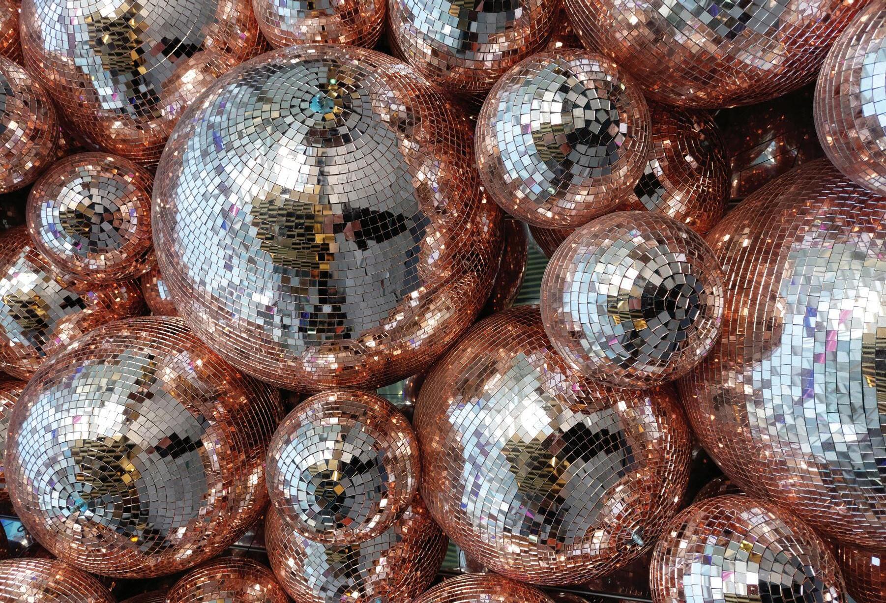 Disco balls are a must to pull off this look. They are a great way to add extra sparkle to the room, and come in all sizes and colours.