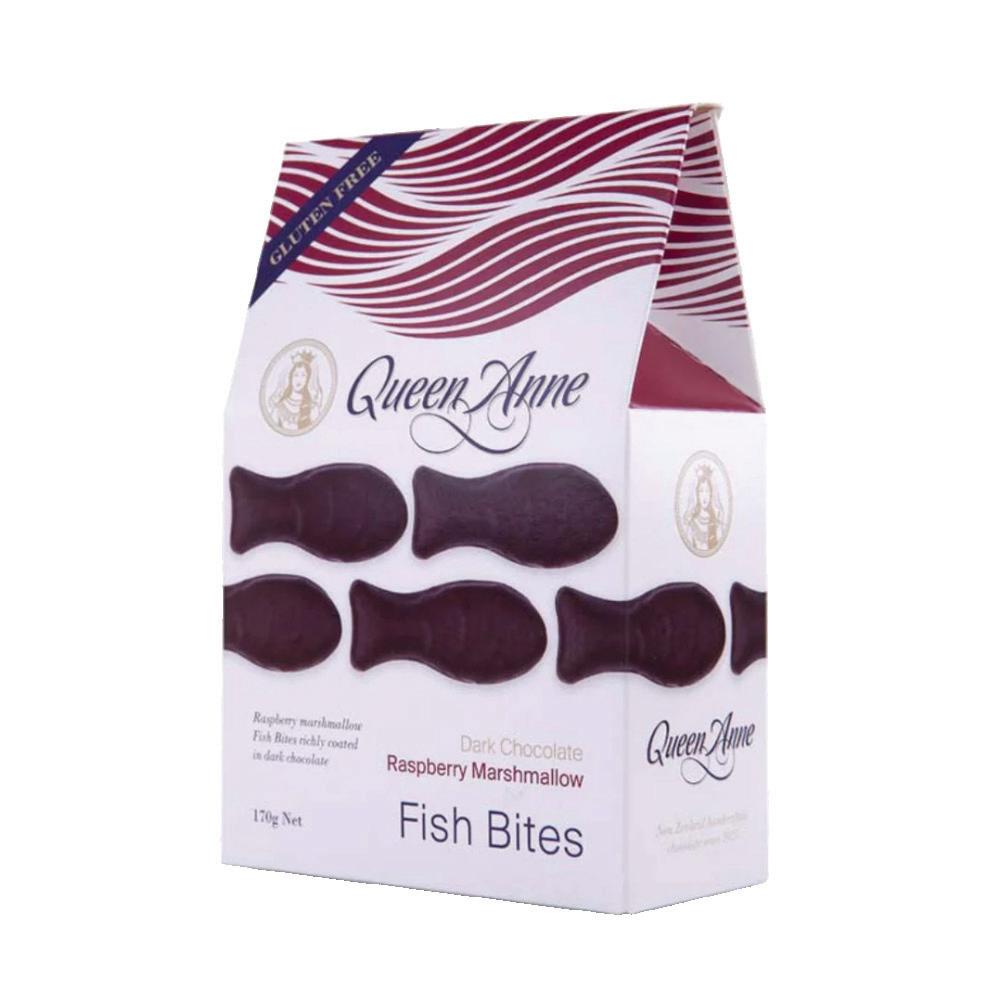 Just like Chocolate Fish - but smaller! Naturally flavoured raspberry marshmallow bite-sized fish are generously coated in rich dark chocolate. Have them on their own or add them to a cheese board or dessert platter – delish! These bite-sized chocolate fish come in a sharing box, so there is enough for everyone…. or maybe not, they are very moreish.