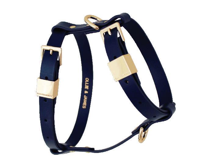 Customers that have chosen our ink blue walk accessories often comment just how eye catching they are in real life. The rich hues of the leather against the polished light gold hardware is regal and timeless.