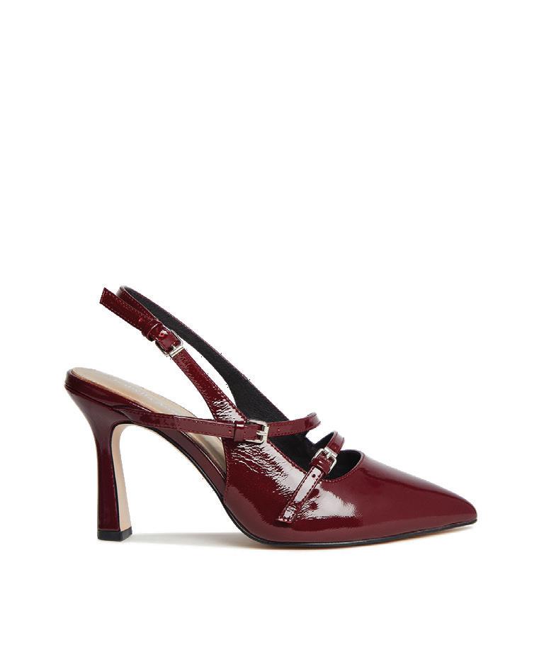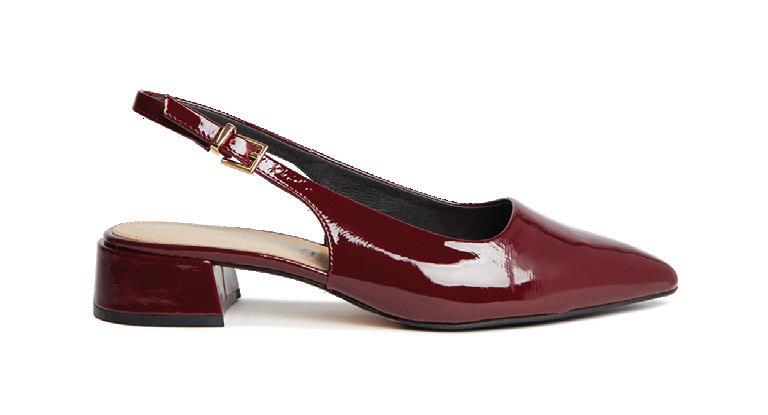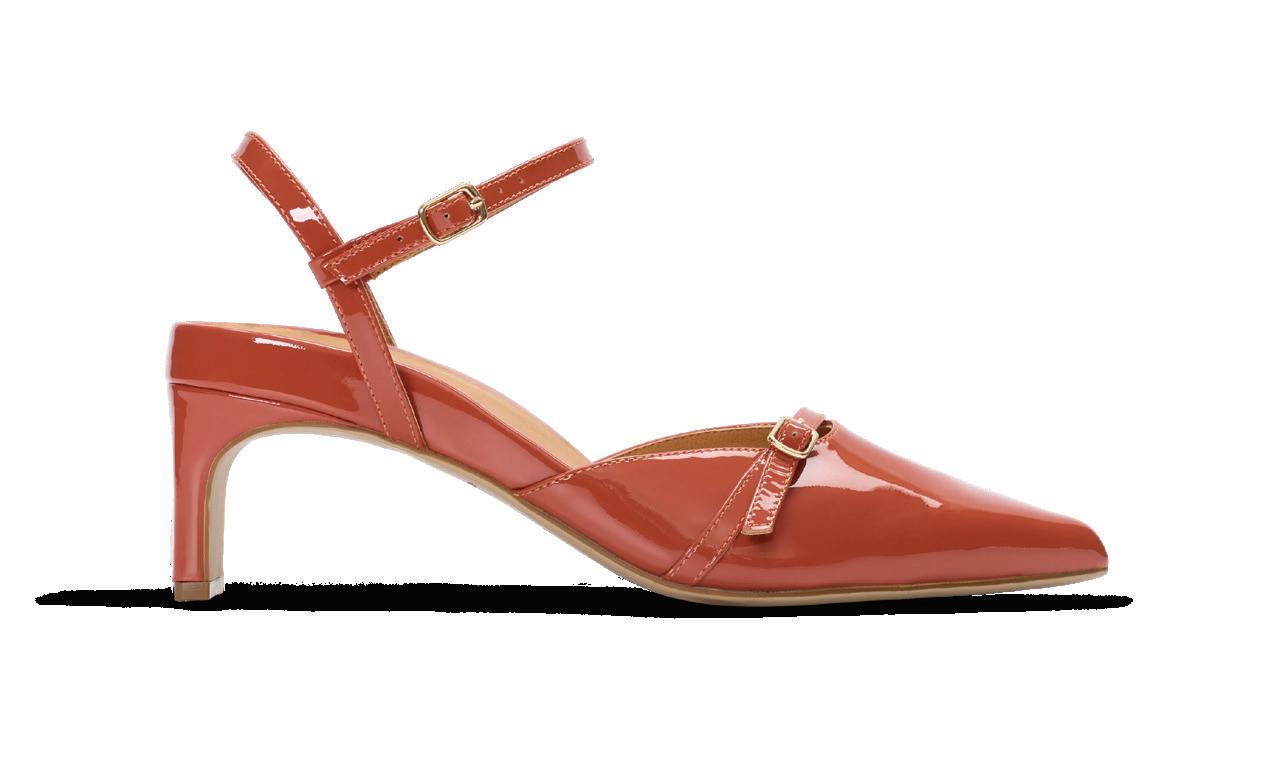 Jinx is our perfect pointed slingback, featuring a glossy texture, a sculpted low block heel, and a delicate buckle strap that skims the ankle. Let her sharpen soft tailoring or slip under fluid midi dresses for that effortless, desk-to-dinner finish.