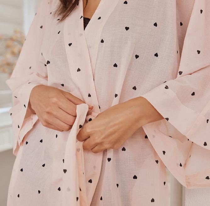 Crafted from 70% Cotton, 30% Silk, this kimono-style maxi robe with beautiful, delicate hearts drapes beautifully for effortless, everyday softness. Light, breathable, and refined in its simplicity.