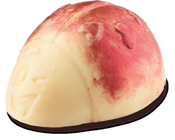 Ground cherry stones and almonds polish and exfoliate the skin, whilst illipe, shea, kokum and Fair Trade cocoa butters provide softness with a rich cherrychocolate scent. Each Love Bug Scrubee is hand painted with red plastic-free glitter by Lush manufacturing teams.