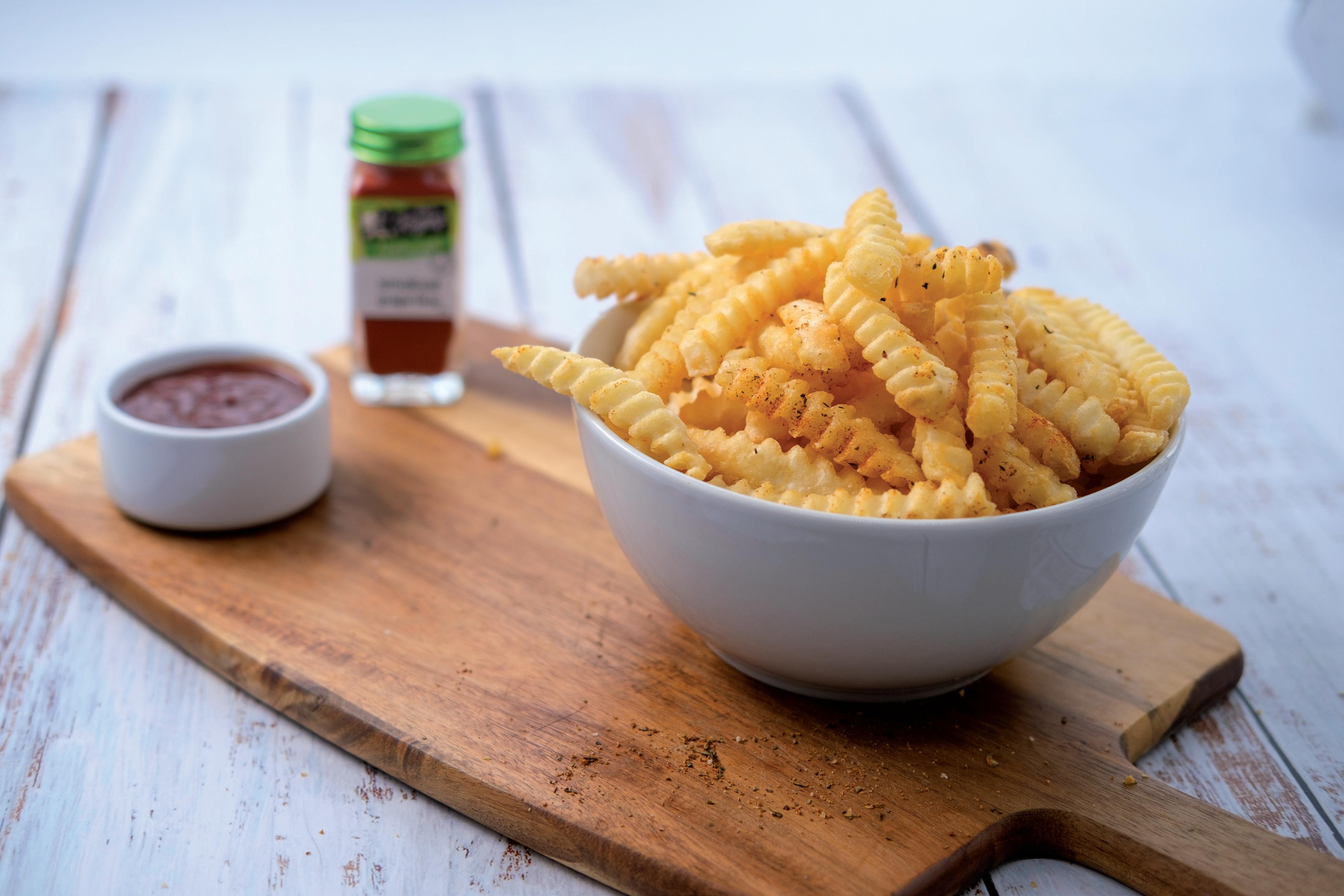 Natural looking fries with skin left on for a desirable rustic appeal and ultimate crispiness.