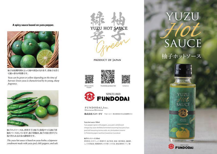 Yuzu Hot Sauce - The spiciness of hot peppers packs a powerful punch, while the refreshing aroma and tangy flavour of yuzu citrus spreads throughout. It pairs well with fried chicken, nuggets, and other meat dishes, as well as fish dishes and tofu.