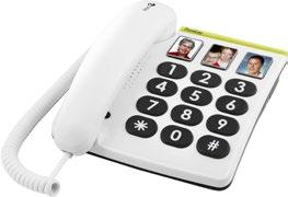 Téléphone intuitif pour personnes âgées avec 3 touches photo. Contactez les personnes importantes d'une simple pression sur une touche. Grandes touches pour faciliter la numérotation. Signal de sonnerie visible. Volume réglable. Convient aux personnes avec un appareil auditif (H.A.C.).