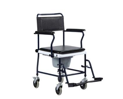 Fauteuil de transfert simple doté de roues arrière compactes. Idéal pour l’emmener avec soi. Cadre en acier bleu recouvert de nylon noir.