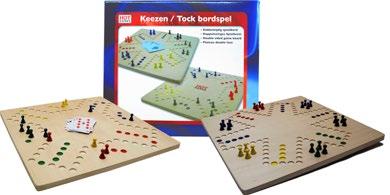 Plateau de jeu double face pour le jeu de tock, en contreplaqué verni (40 x 40 cm). Avec des cases creusées pour recevoir les pions. Avec des pions en bois colorés et des cartes à jouer. Pour 4 et 6 joueurs.
