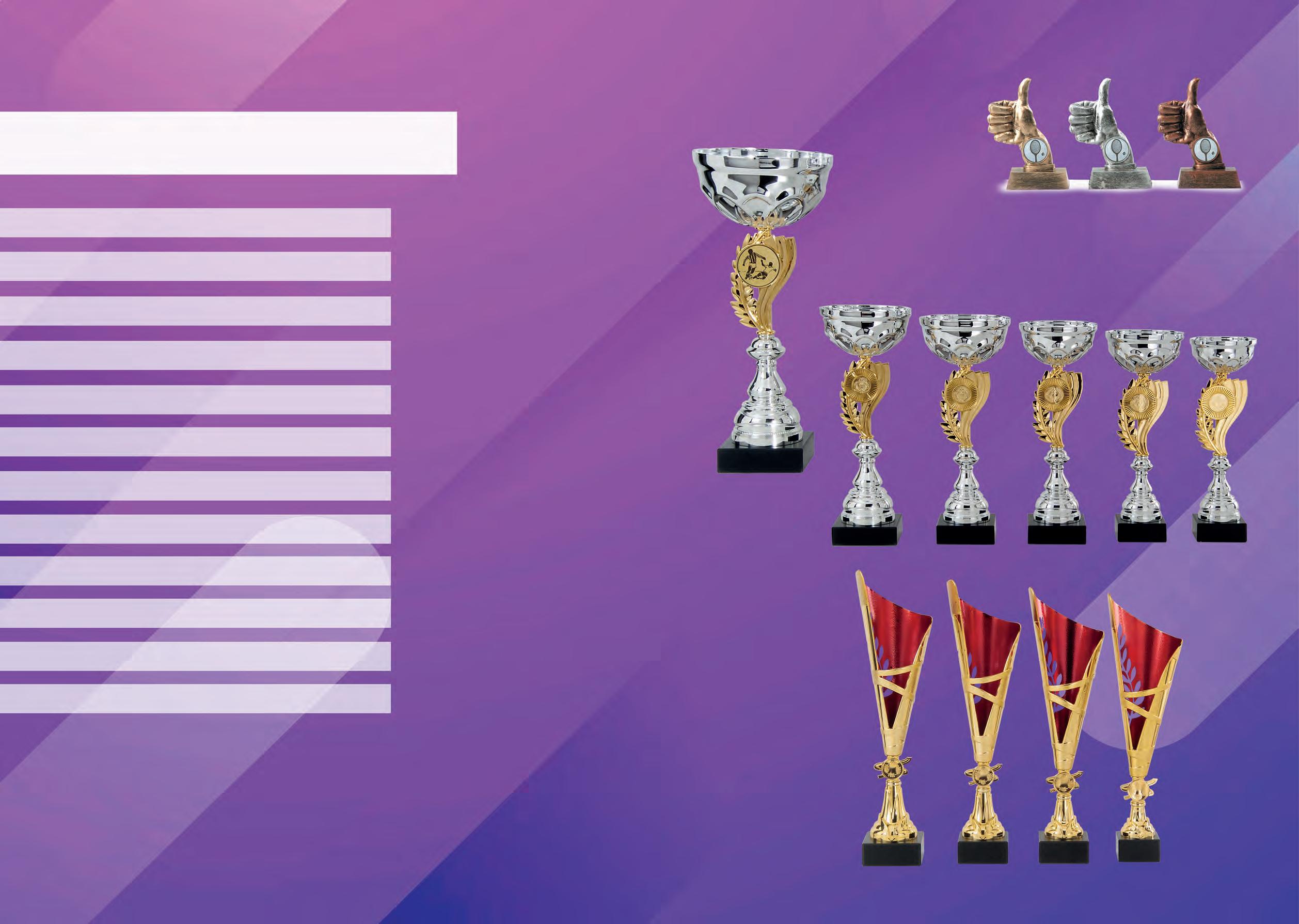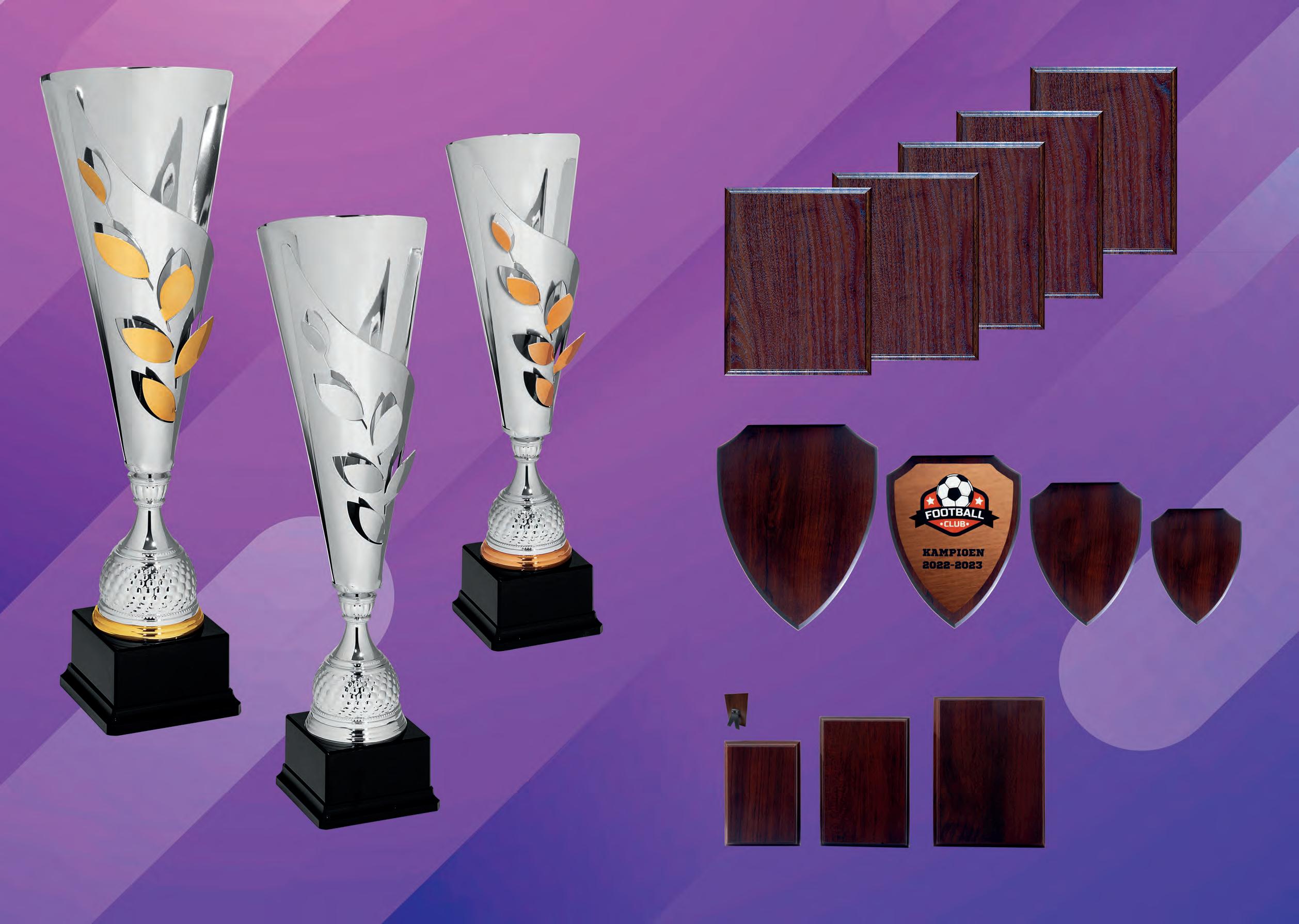 2 INDEX BLZ. 2 - 56 Bekers / Bokalen BLZ. 57 - 70 Exclusief BLZ. 71 Houten wandborden BLZ. 72 - 81 Rosetten / Sjerpen BLZ. 82 - 91 Glas BLZ. 92 - 93 Borden BLZ. 94 - 103 Houten standaards BLZ. 104 - 107 Beelden BLZ. 108 - 120 Medailles en medailledoosjes BLZ. 121 Plastic figuren BLZ. 122 - 123 Halslint BLZ. 124 - 127 Afslagen / Centers