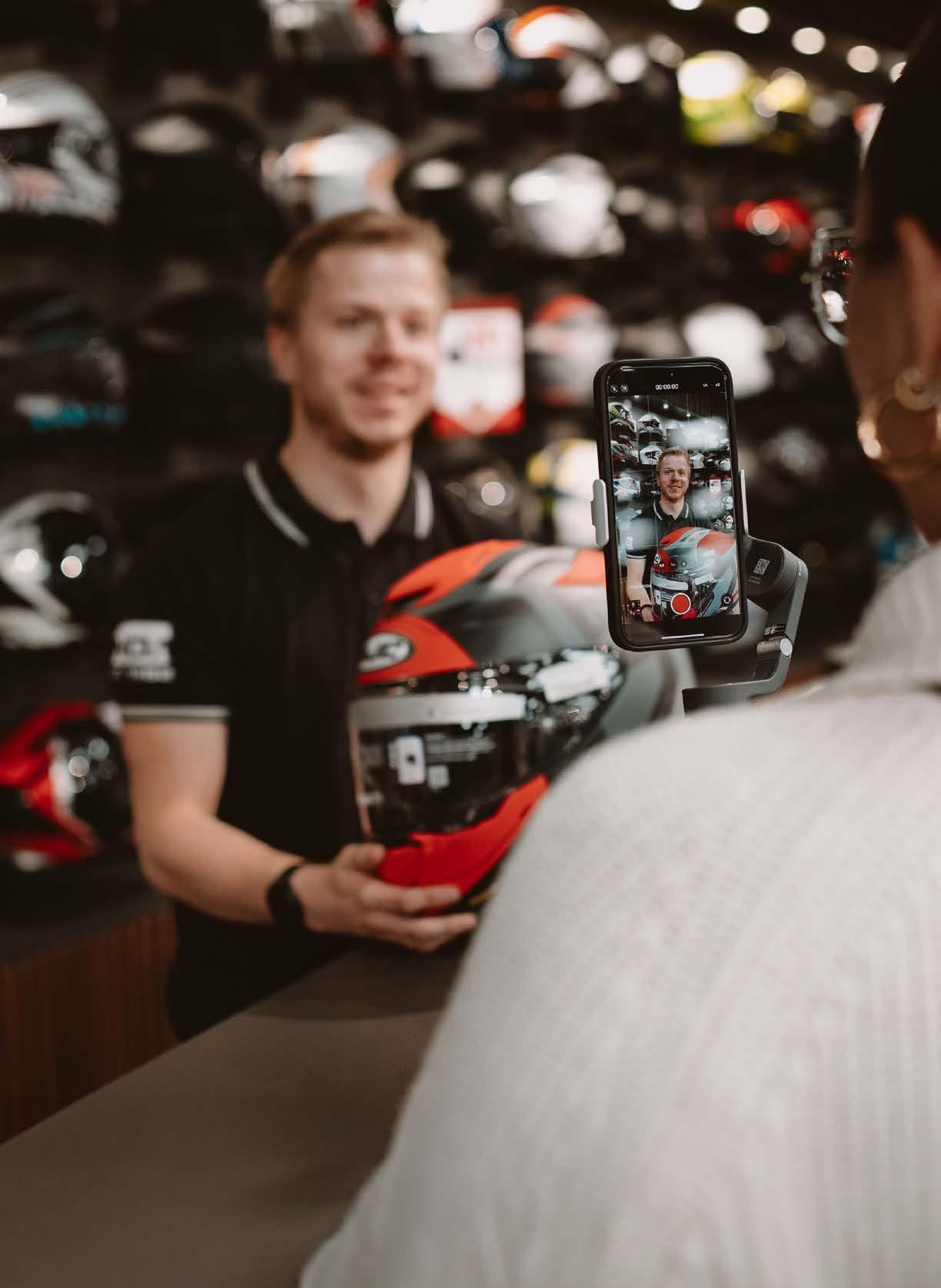 Wekelijks delen we inspirerende content, onthullen we nieuwe motoren en bieden we praktische tips, maar we gaan verder dan dat. Op onze social media vind je verschillende rubrieken, zoals onthullingen en close-up video’s van nieuwe motoren, ‘unboxing helmets’ waarin we verschillende helmen op een flitsende manier presenteren, een rubriek waarbij we de verschillende vestigingen in de spotlight zetten, speciale aanbiedingen en natuurlijk de nieuwste collectie kleding en accessoires.