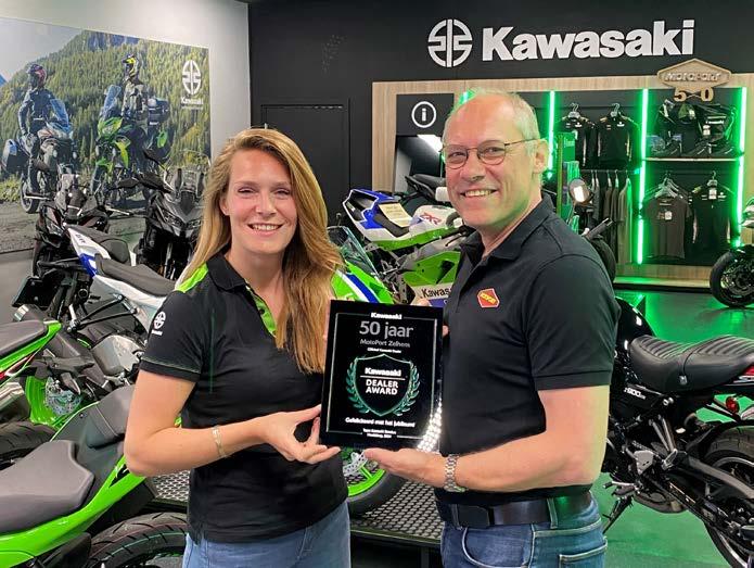 Begin juli vierde MotoPort Zelhem een bijzondere mijlpaal: al 50 jaar officieel Kawasaki-dealer! Kim Mastenbroek, district manager van Kawasaki, overhandigde de officiële Kawasaki Dealer Award aan Renzo Engbers. MotoPort Zelhem is supertrots en kijken ernaar uit om hun klanten nog vele jaren te voorzien van de topkwaliteit en betrouwbaarheid van Kawasaki.