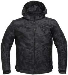 Sportieve, waterdichte urban motorjas met afneembare capuchon en voering. Ook in damesmaten. Verkrijgbaar in zwart, grijze print en groene print. Van € 229,95 voor
