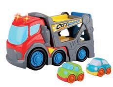 Afm. uitgeklapt 66 cm. Deze dino is een racebaan én transportwagen in één! Deze vrachtwagen kun je gebruiken om je auto’s in te bewaren. Plaats hem rechtop en zie hoe de auto’s van de helling af racen. Incl. 2 metalen racewagens. 331-1766 3+