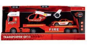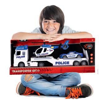 Politie of Brandweer Transporterset Afm. 54 cm. Met realistische licht- en geluidseffecten. Met 2 bijpassende voertuigen met frictie. 341-0288 (Politie) 341-0289 (Brandweer)